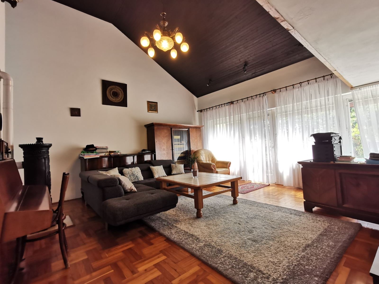 A ház egyedi tervezésének köszönhetően tágas terek és dupla belmagasságú nappali várja az új tulajdonost. A 7 szoba kiválóan alkalmas kényelmes lakhatásra, otthoni irodának vagy akár vendégszobáknak is. A nagy ablakok egész nap beengedik a napfényt, ezzel természetes, barátságos hangulatot teremtve.
