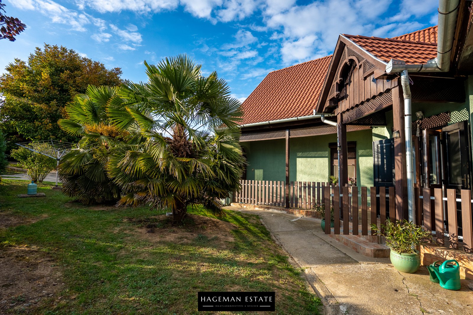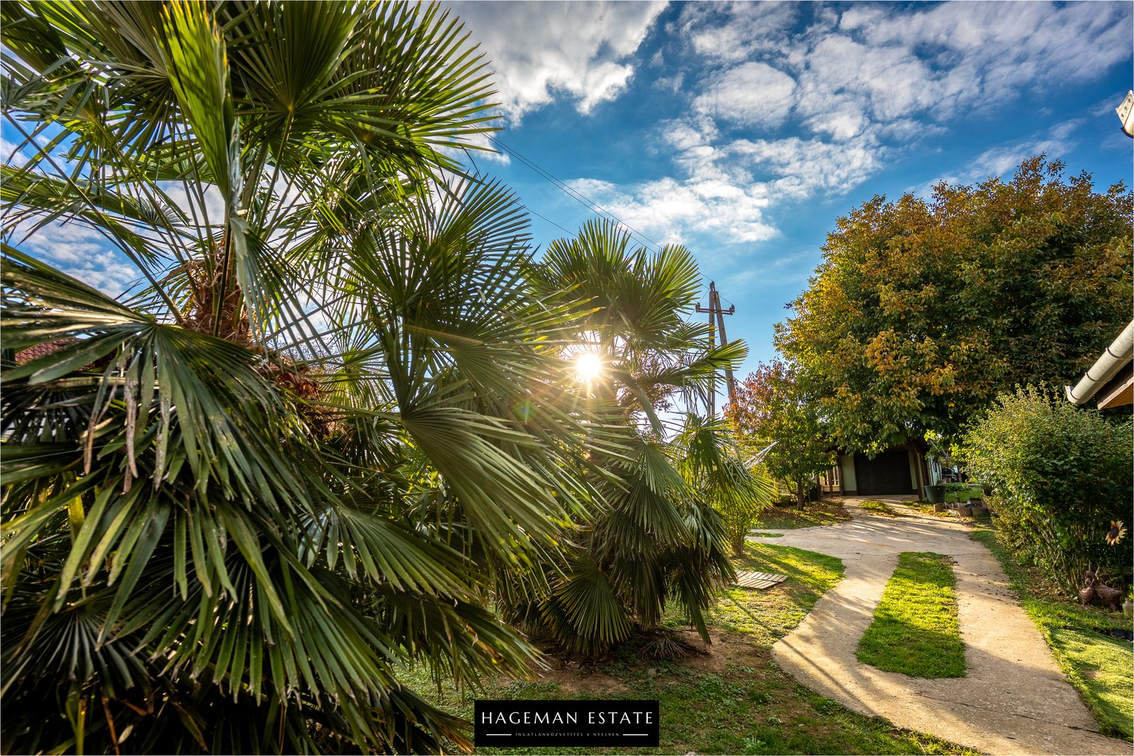 Az ingatlan összesen 1700 m²-es, két helyrajzi számon szereplő telken fekszik (kb. 1400 m² + 300 m²), teljesen bekerítve, gondozott, parkosított kerttel, pálmafákkal, banánfákkal, gyümölcsfákkal és dísznövényekkel. A telek hátsó részén dupla kerítésrendszer és földbe süllyesztett kerítés biztosítja a teljes magánszférát.