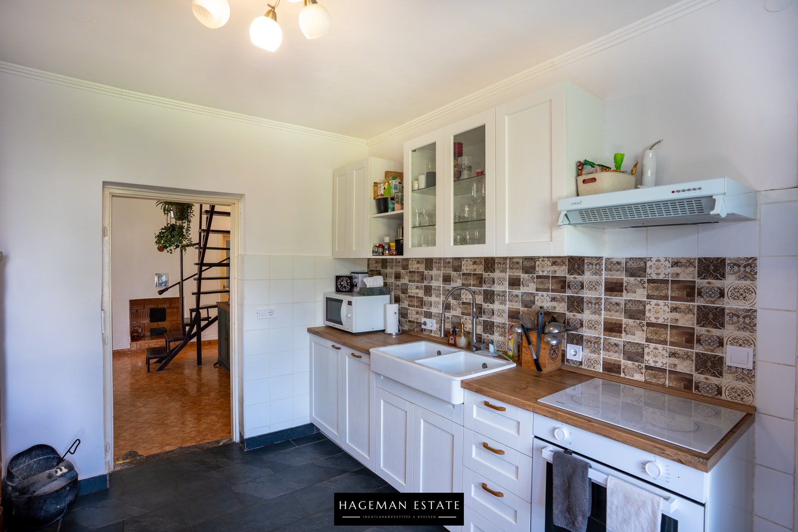 The 120 m² house includes 4 spacious rooms, 2 bathrooms, a modern kitchen, a winter garden, 2 traditional tiled stoves, a fully renewed electrical system, and several built-in air conditioners. New windows with shutters in every room. Modern kitchen units and built-in appliances are included in the price!