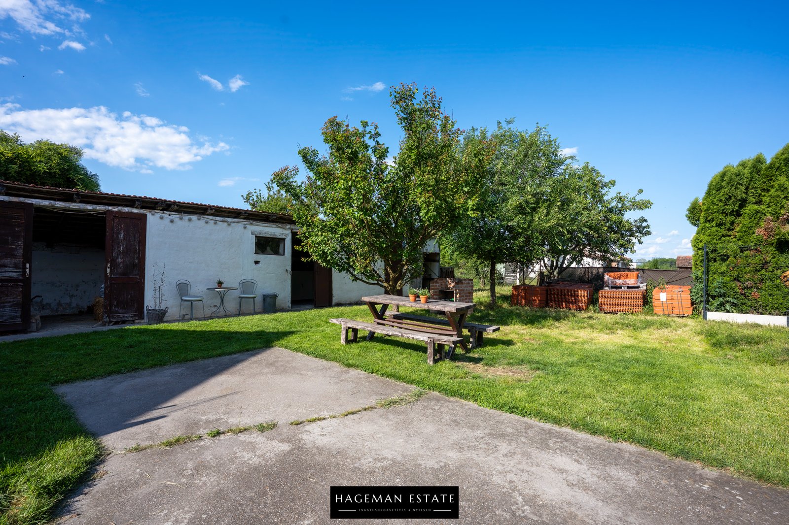 A hátsó, kb. 2000 m²-es udvaron található: