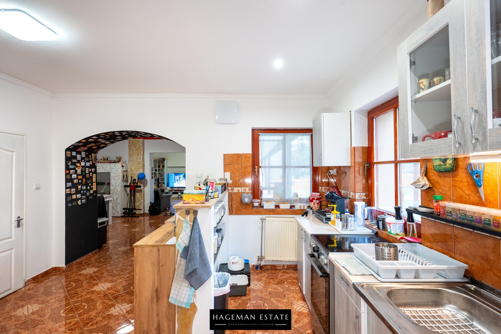 A praktikus elrendezés: tágas konyha-étkező, nappali, két hálószoba, külön WC és fürdőszoba. Fűtése központi vegyes tüzelésű kazánnal történik, a meleg vizet elektromos bojler biztosítja. A vegyes falazatú ház Tondach cserép tetővel és dupla üvegezésű fa nyílászárókkal rendelkezik, így hő- és hangszigetelt.